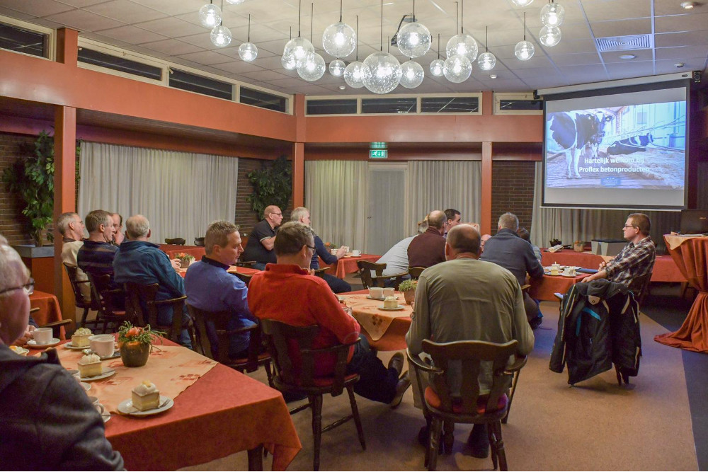 Maandag 18 februari jl. heeft Proflex Betonproducten een presentatie verzorgd bij LTO in Friesland. De presentatie was gericht op het emissiearm bouwen van rundveestallen en de wettelijke eisen, die hieraan worden gesteld. De MeadowFloor van Proflex Betonproducten voldoet aan de eis van 6,0 kg ammoniak per dierplaats per jaar. De MeadowFloor is eveneens geschikt en erkend om bestaande rundveeroosters emissiearm te maken. Op een eenvoudige manier worden de bestaande roosters dan voorzien van rubber, composiet en afsluitklepjes. Tijdens deze presentatie kwamen ook de klauwbekappers aan het woord. Zij vertelden onder andere wat de invloed van een goede vloer is op de klauwgezondheid van de koe.